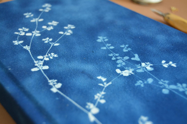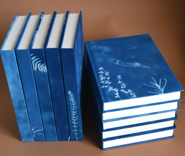 Ce carnet est le fruit d'une belle collaboration artisanale avec Filia qui a réalisé un cyanotype poétique sur le tissu de couverture, j'ai réalisé tout le reste du carnet. On obtient ainsi un carnet au couleurs bleues magnifiques et un décor très poétique au recto et verso du carnet. Le carnet est un carnet de croquis constitué de 216 pages en papier 100g idéal pour le croquis au crayon, feutre, encre ...