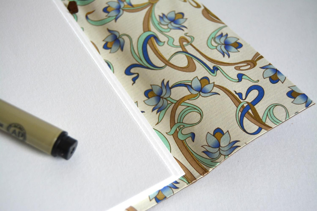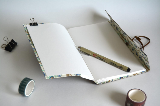Carnet souple avec une couverture en cuir doublé à l'intérieur de papier à motifs. Couverture à rabat et très solide qui permet d'être transporté facilement partout. La couture est apparente dans le dos, avec un fil de couture en lin ciré contrasté.