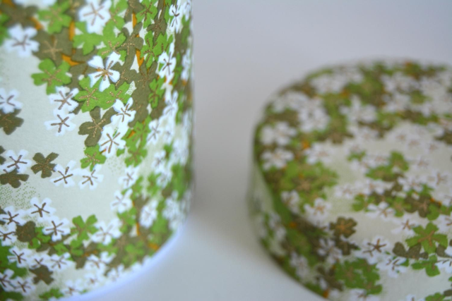 Boîte à thé motifs fleurs cerisier japonais vert.